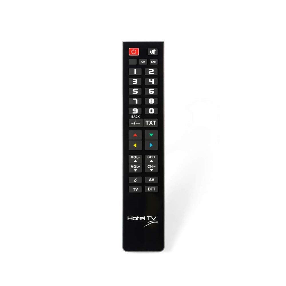 Image: Superior Hotel TV Universal Programmable Remote Control, showing its compact design and large buttons.