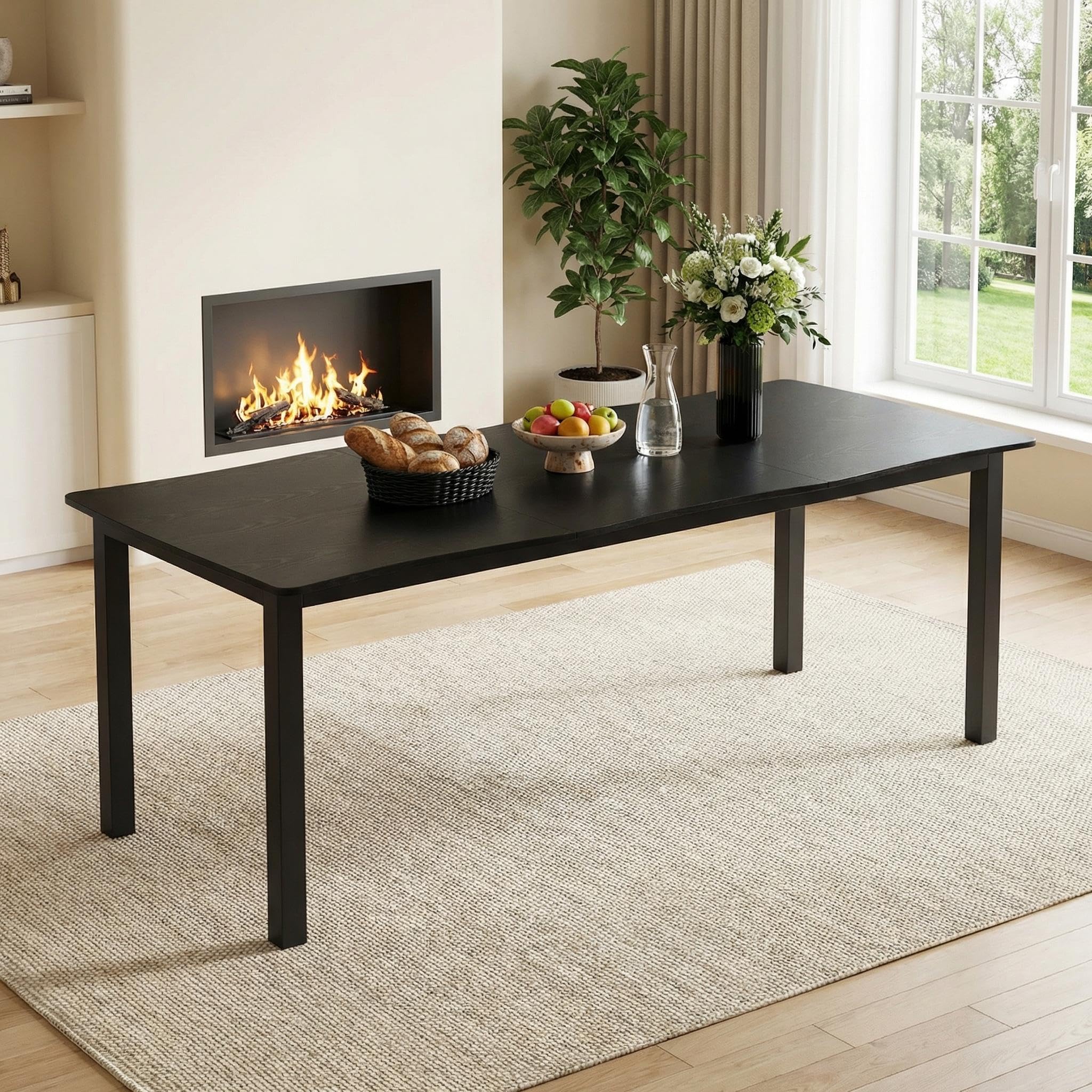 The Garvee Dining Table is designed to comfortably seat 6-8 people, offering a versatile surface for dining, work, or study. It features a rustic wave irregular edge design, a thick MDF top, and a robust metal frame, ensuring both style and durability. The tabletop is waterproof and scratch-resistant for easy maintenance.