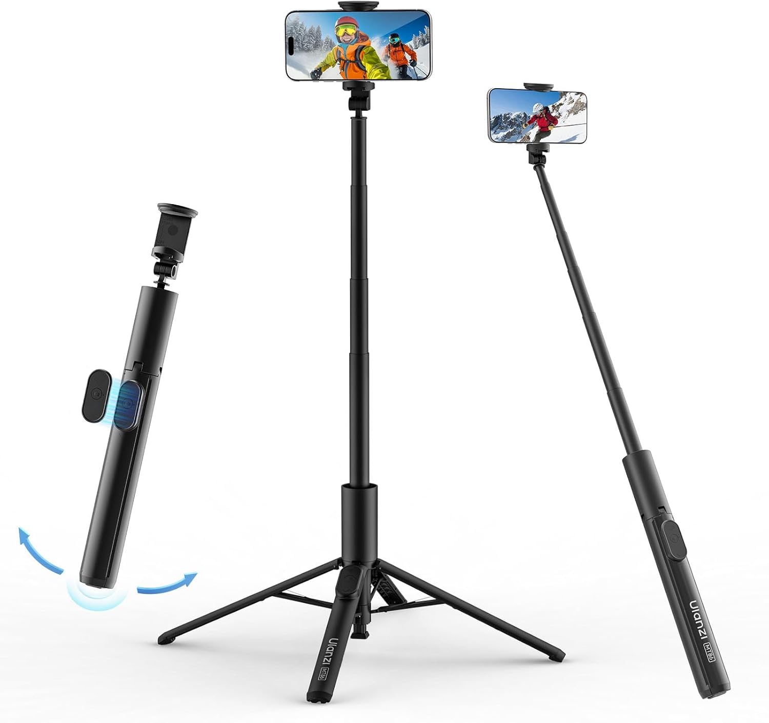 The MT86 extends to 1.46 meters, functioning as a selfie stick for capturing wide-angle shots and group photos.